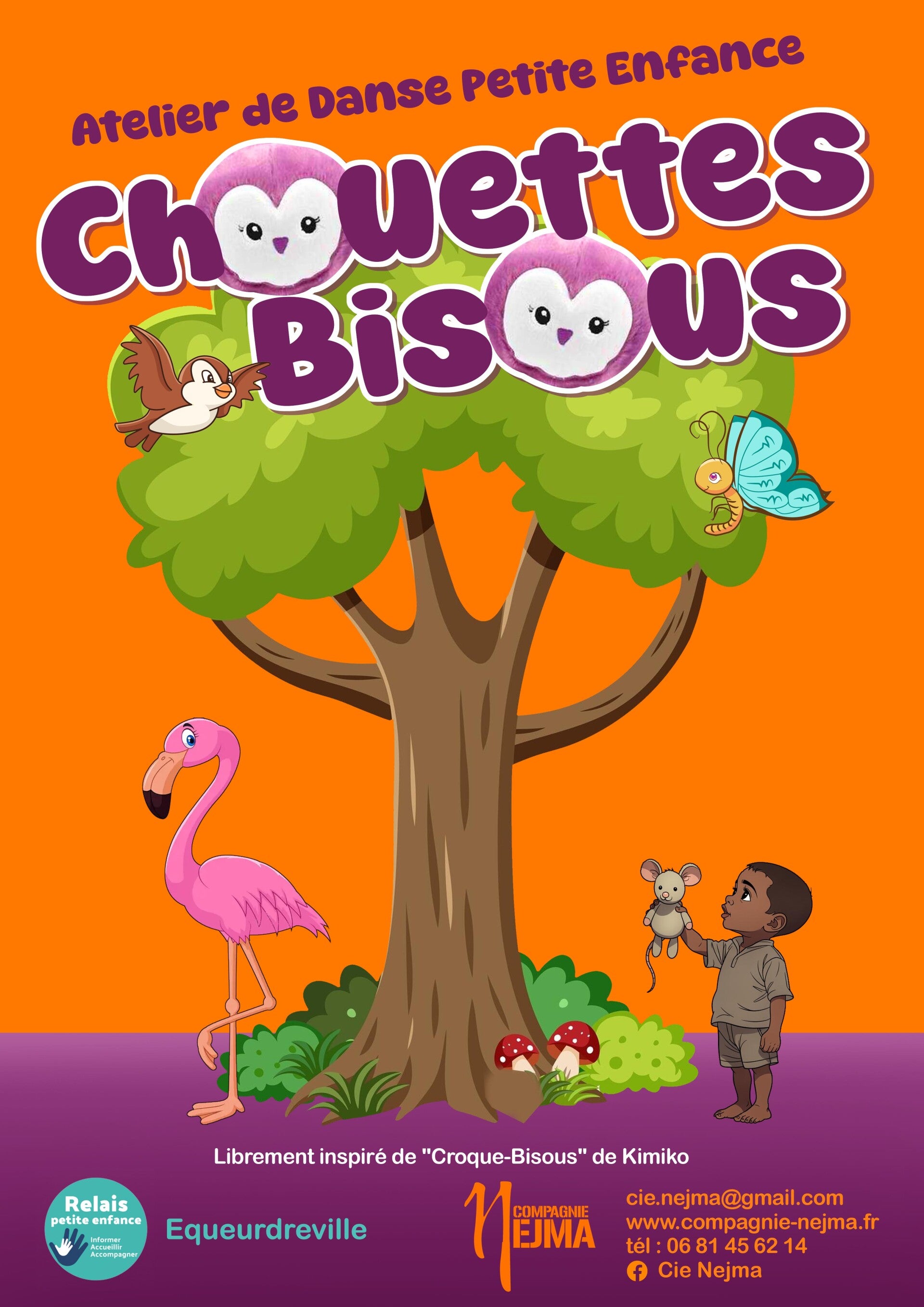 Chacun accompagné d'un doudou bisou, danses autour de l'arbre avec l'oiseau, le flamant rose, le papillon & la chouette