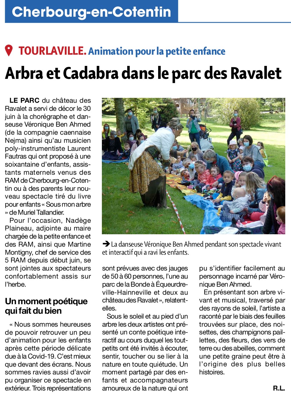 Mail d'une Animatrice R.P.E., Caen (Juillet 2022) : "Ce fut un réel plaisir de participer à ce spectacle. En tant qu’éducatrice de jeunes enfants, je trouve que tu as bien compris ce qu’est le tout petit, ce qu’il attend, ce dont il a besoin pour être bien : du magique, de l’éveil des sens, des émotions … Alors, avec la musique, le mouvement et l’interaction en plus, ce spectacle est franchement adapté à ce tout jeune public."
